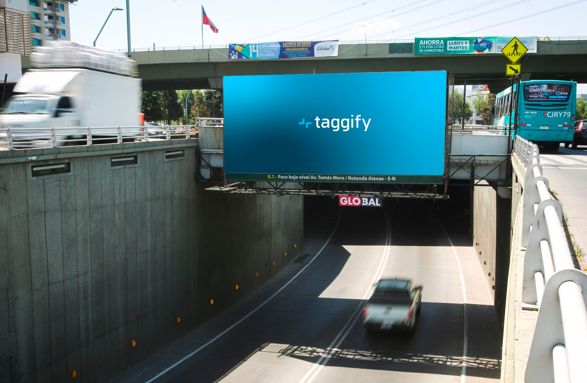 This Mid Screen located in Paso Bajo Nivel Tomás Moro, is in the important and strategic area with a Mc Donalds, Líder Supermarket, Pizza Hut and Banks nearby. In addition, it is on its way to the Dominicos Mall, integrating a circuit of 10 screens distributed in Comuna Las Condes.