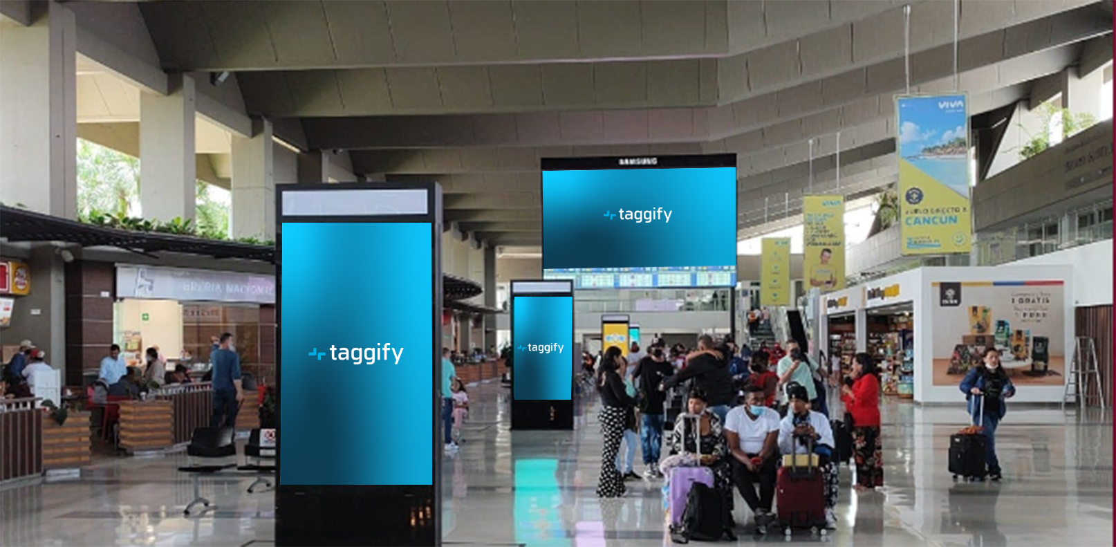 Circuito de tótems ubicados en el aeropuerto de cali, Colombia. Potencie sus campañas publicitarias con la red de tótems y genere impactos de calidad con publicidad programática.