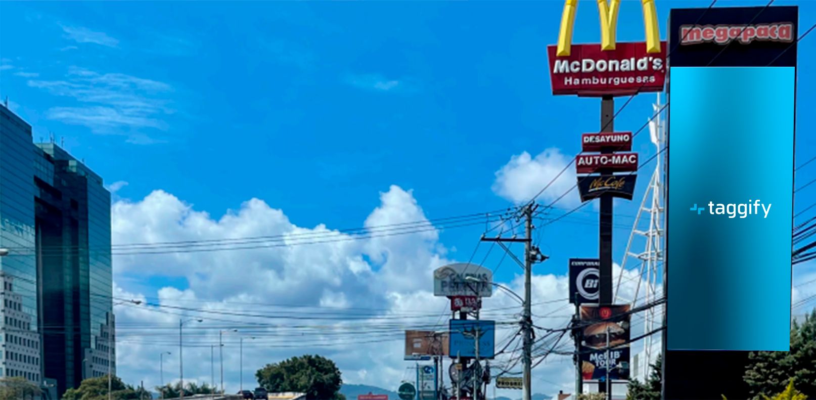 This outdoor advertising display located in Guatemala provides innovation and modernity to brands, positioning them as innovative and modern, improving their image, and attracting consumers who value technology and novelty.