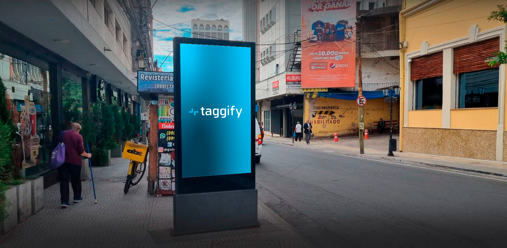The totem located at Estrella and Alberti has a high visibility for passers-by circulating in the area. Brands can advertise on street furniture such as totems in an innovative and interactive way: thanks to the precise impressions guaranteed by programmatic advertising.