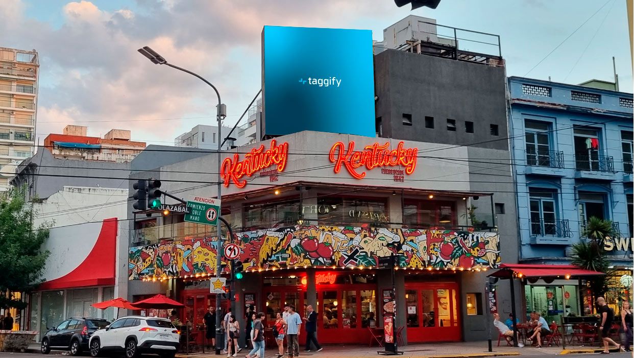 Pantalla ubicada en CABA, Argentina. Con programática, las marcas pueden adaptar y actualizar su mensaje de forma rápida y sencilla, facilitando la promoción de ofertas, eventos especiales o campañas temporales.