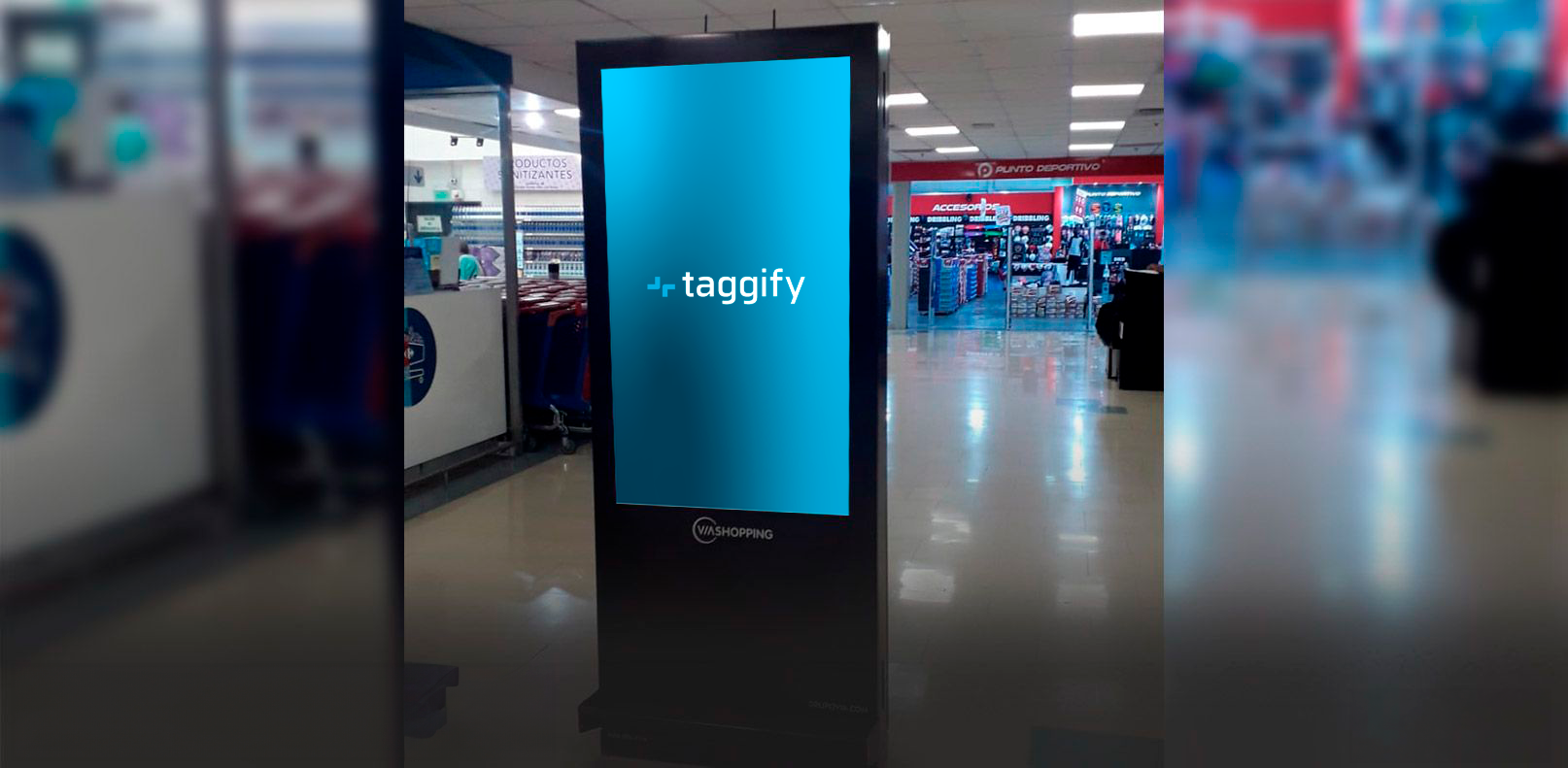 Tótem ubicado en un Supermercado Carrefour en la sucursal San Fernando, Buenos Aires. En un corredor con alto flujo de peatones, esta pantalla tiene una muy buena visibilidad para los clientes que entran y salen del importante supermercado.