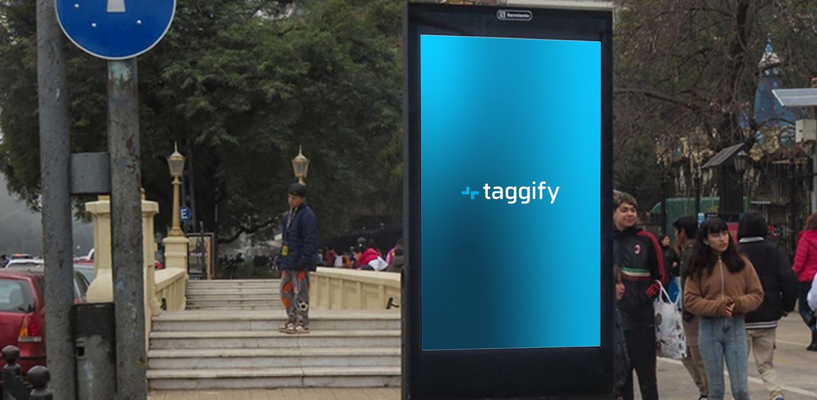 Con compra programática, esta pantalla street furniture reduce desperdicio publicitario mostrando anuncios relevantes.