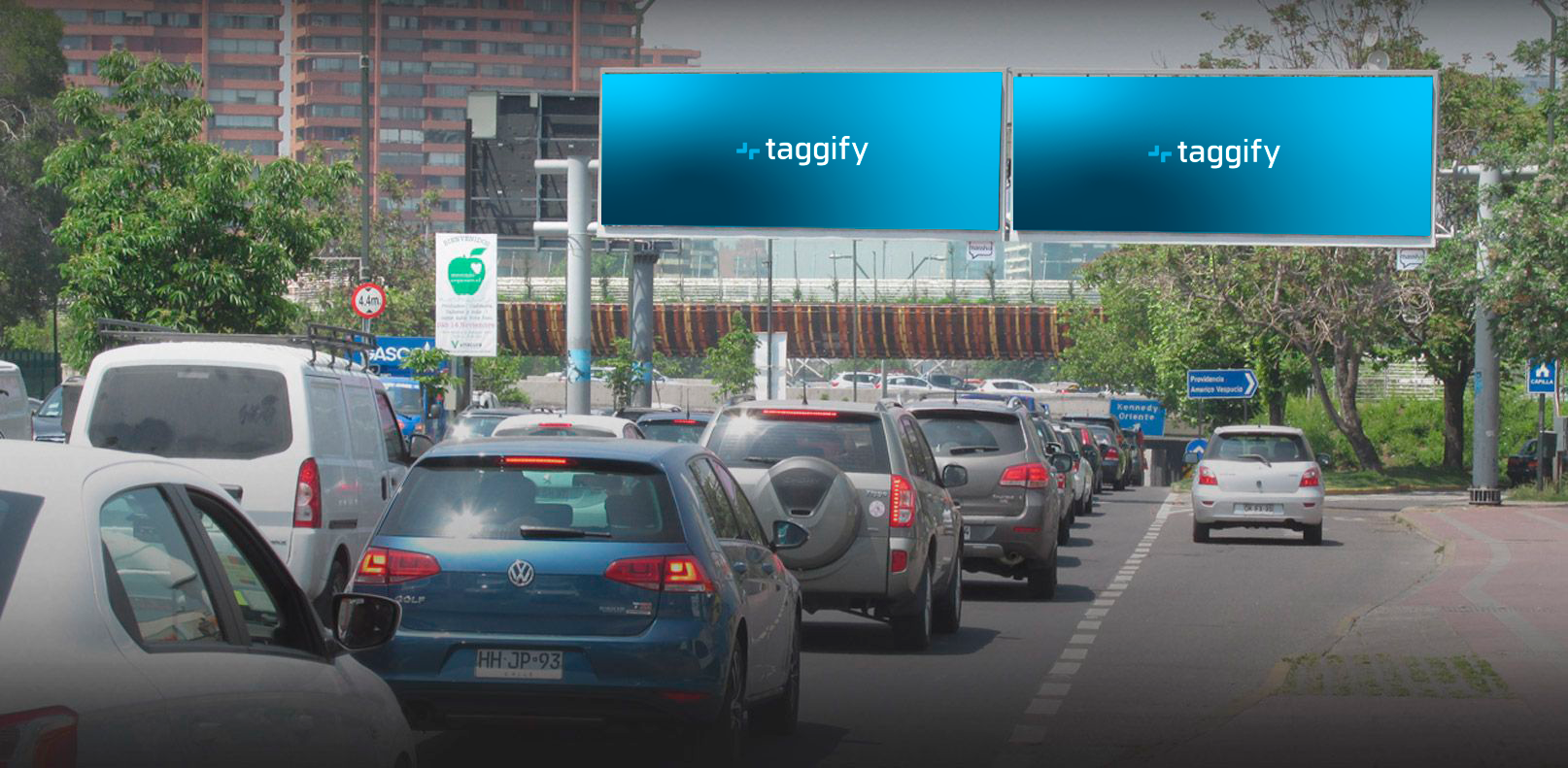 Midscreens ubicados en zona de alto flujo vehicular en Paso de Nivel Manquehue en sentido Norte. Este LED se encuentra en un lugar estratégico por estar a pocos metros de la transitada Avenida Presidente Kennedy. También tiene una gasolinera a 100 metros y tiendas populares a su alrededor.
