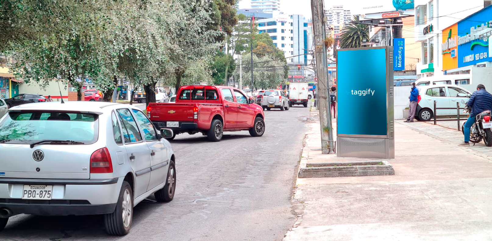 Pantalla ubicada en Quito, Ecuador. Miles de conductores y peatones circulan a diario, lo que garantiza un alcance masivo para las marcas. Además, la calidad de este tótem permite mostrar contenidos dinámicos y atractivos