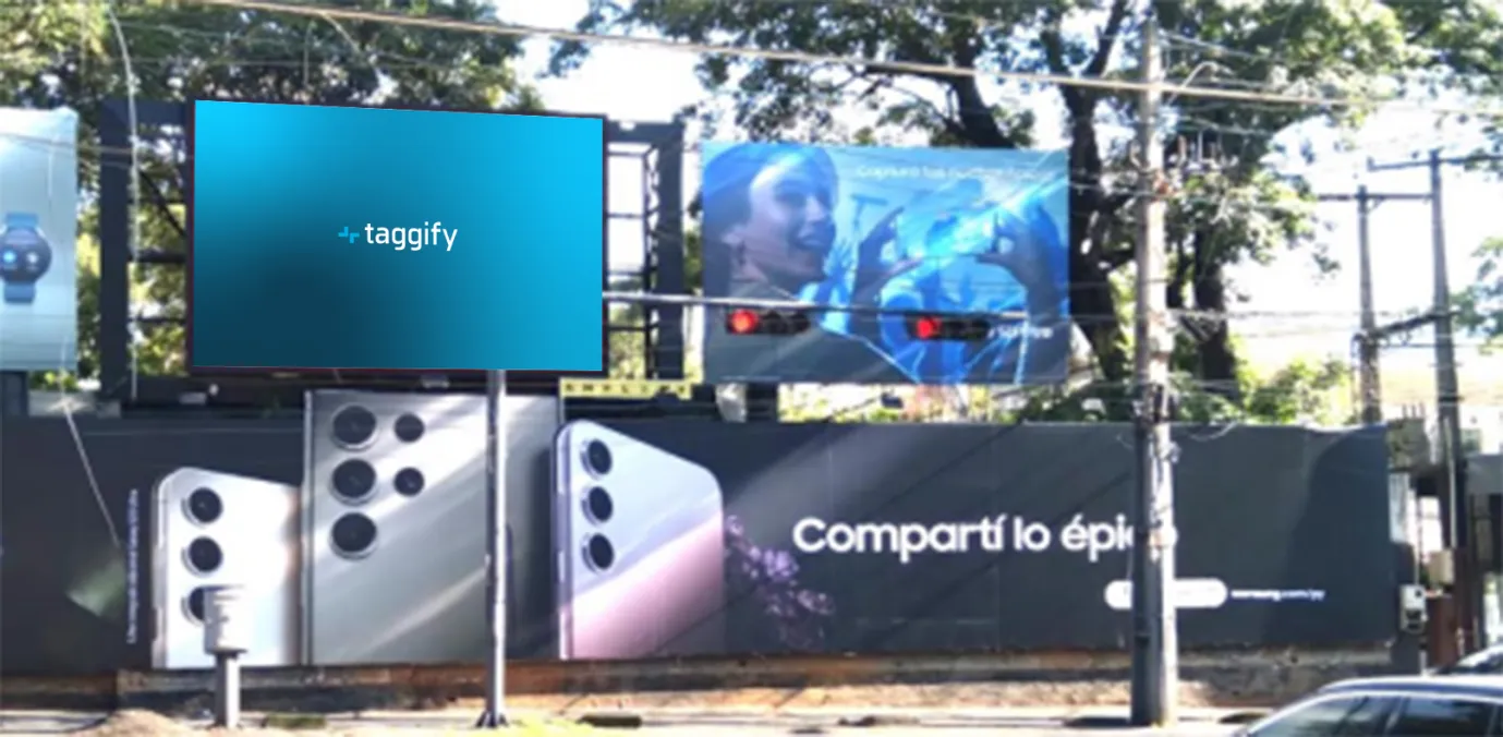 Pantalla situada en Asunción, Paraguay. Las pantallas integradas en la plataforma DSP de Taggify pueden mostrar contenido dinámico que cambia según la hora del día, el clima o eventos específicos, haciendo que los anuncios sean más relevantes y contextuales para los espectadores.